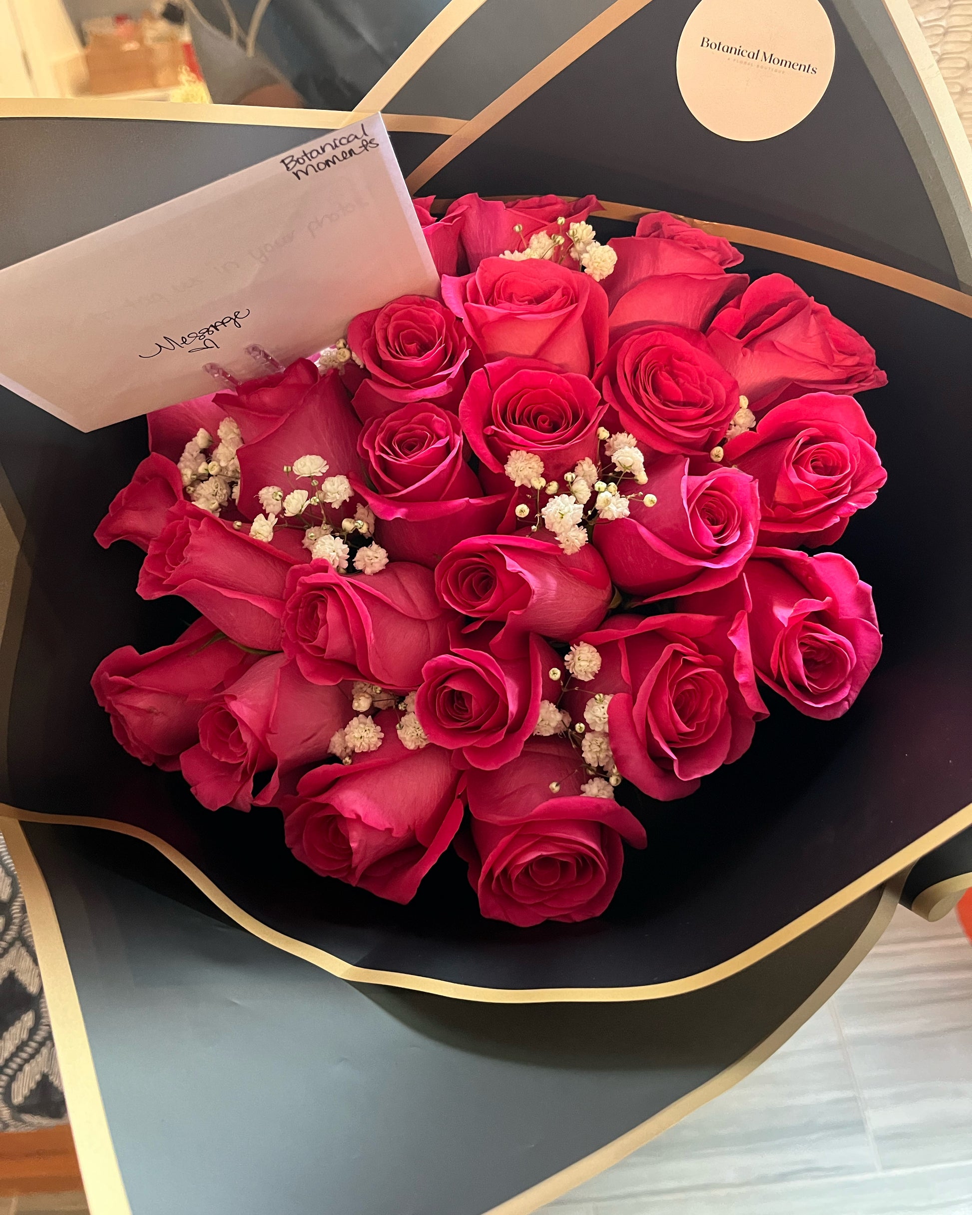A gorgeous bouquet of Hot Pink Roses.
